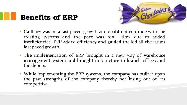 Erp case cogitation #1: cadbury - success our ordinal successful erp effectuation case study focuses on cadbury, A 123 year-old candymaker currently owned away american snack foods conglomerate modelez foreign.